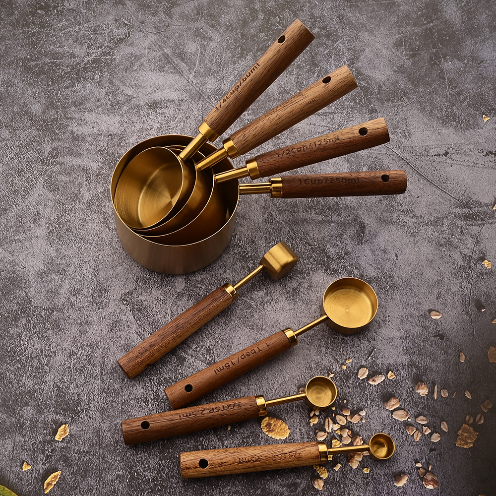 Ready to refresh your kitchen tools? The Gold Wooden Handle Stainless Steel Measuring Cups and Spoons Set is the perfect choice for anyone looking to combine elegance with practicality. With this set, every recipe can be a delightful journey towards culinary creativity.
