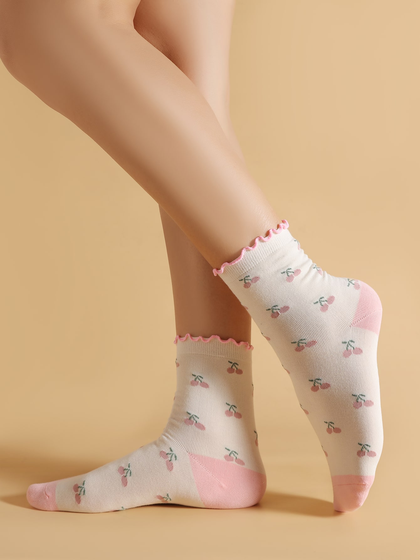 Refresh your sock drawer with a pair that feels as good as it looks. Slip on these cherry-pattern mid-calf socks and enjoy breathable comfort, reliable fit, and a touch of sweetness with every step. Treat your feet to everyday joy—because small details make a big difference.