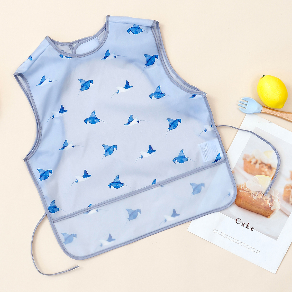 Unlike ordinary cloth bibs, this waterproof design acts as a barrier against moisture. Liquids stay on the surface instead of soaking through to your child’s clothes. The sleeveless apron style offers wider coverage than standard bibs, protecting more of your baby’s outfit. Plus, the adorable pattern adds a fun touch to every meal.