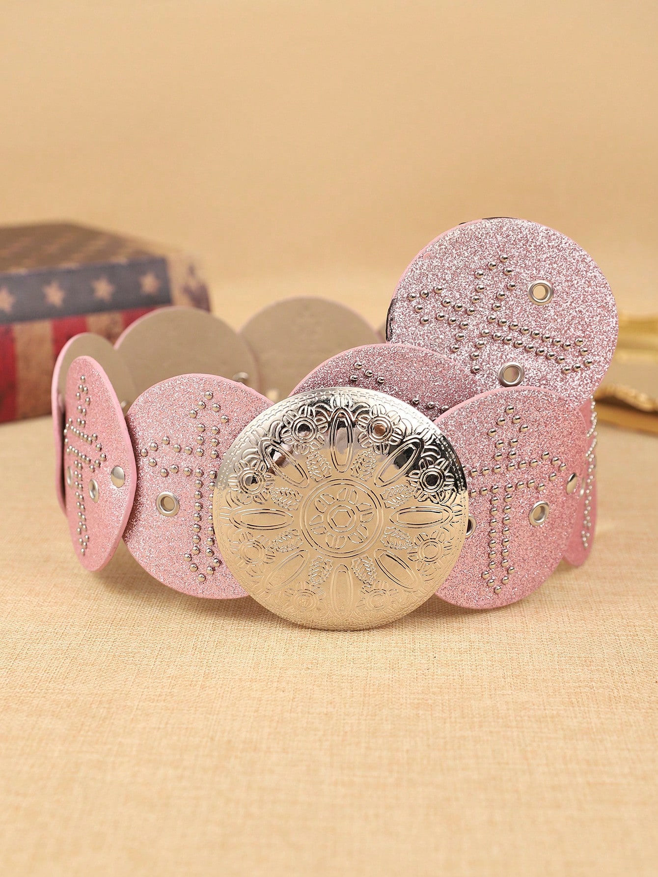 This belt stands out because it is more than just an accessory—it’s a style enhancer. Its wide silhouette is ideal for layering over flowing dresses, long tops, tunics, and even lightweight outerwear. Whether you’re dressing up for a weekend outing, adding shape to a loose outfit, or giving your bohemian wardrobe a fresh update, this belt delivers the perfect mix of trendiness and comfort. Its blend of bright pink color and metallic elements makes it a fun yet sophisticated choice for all seasons.
