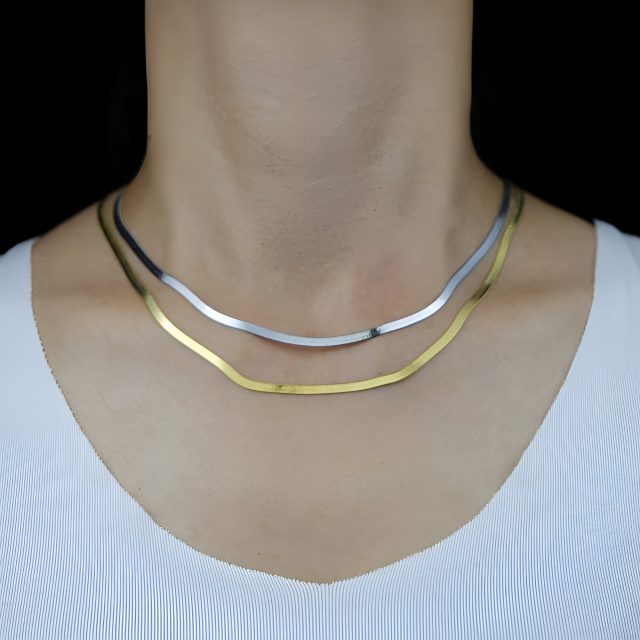 This snake bone chain necklace is ideal for any moment—add a touch of glow to your work outfit, bring elegance to an evening ensemble, or make a thoughtful gift for someone special. Its golden hue and refined craftsmanship make it a must-have addition to every jewelry collection.