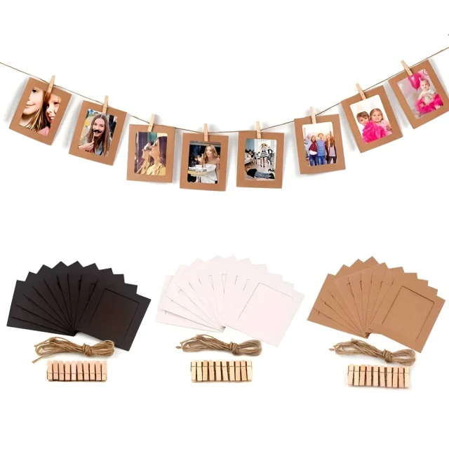 Each pack includes 10 premium-quality 4-inch photo clips crafted with care for durability and elegance. The frames are made from sturdy paper material, ensuring your cherished memories stay securely displayed. These clips are easy to hang and reposition, allowing you to customize your wall or banner effortlessly.