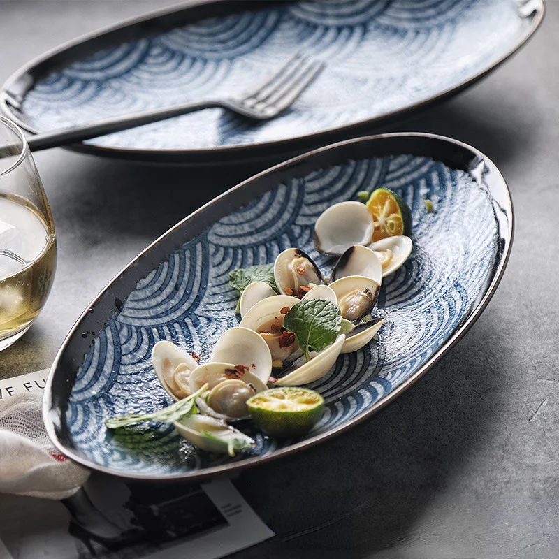 Bring timeless Japanese artistry to your dining table with this stunning 11 Inch Ceramic Fish Dish. Handcrafted with care and finished with a serene sea ripple design, this oval porcelain plate embodies both simplicity and sophistication. Its smooth glaze and underglaze color technique highlight natural textures, creating an elegant presentation for your favorite dishes. Perfect for serving steamed fish, fresh salads, sushi, or desserts, it adds a refined charm to both everyday meals and special occasions.