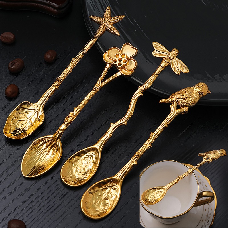 Bring a touch of vintage sophistication to your table with our Retro Gold Metal Coffee & Dessert Spoon collection. Crafted with intricate designs featuring delicate dragonflies, graceful birds, and blooming flowers, these spoons turn every sip and bite into a moment of beauty. Made from durable zinc alloy with a radiant gold finish, they add an elegant sparkle to your coffee breaks, dessert moments, and afternoon teas.