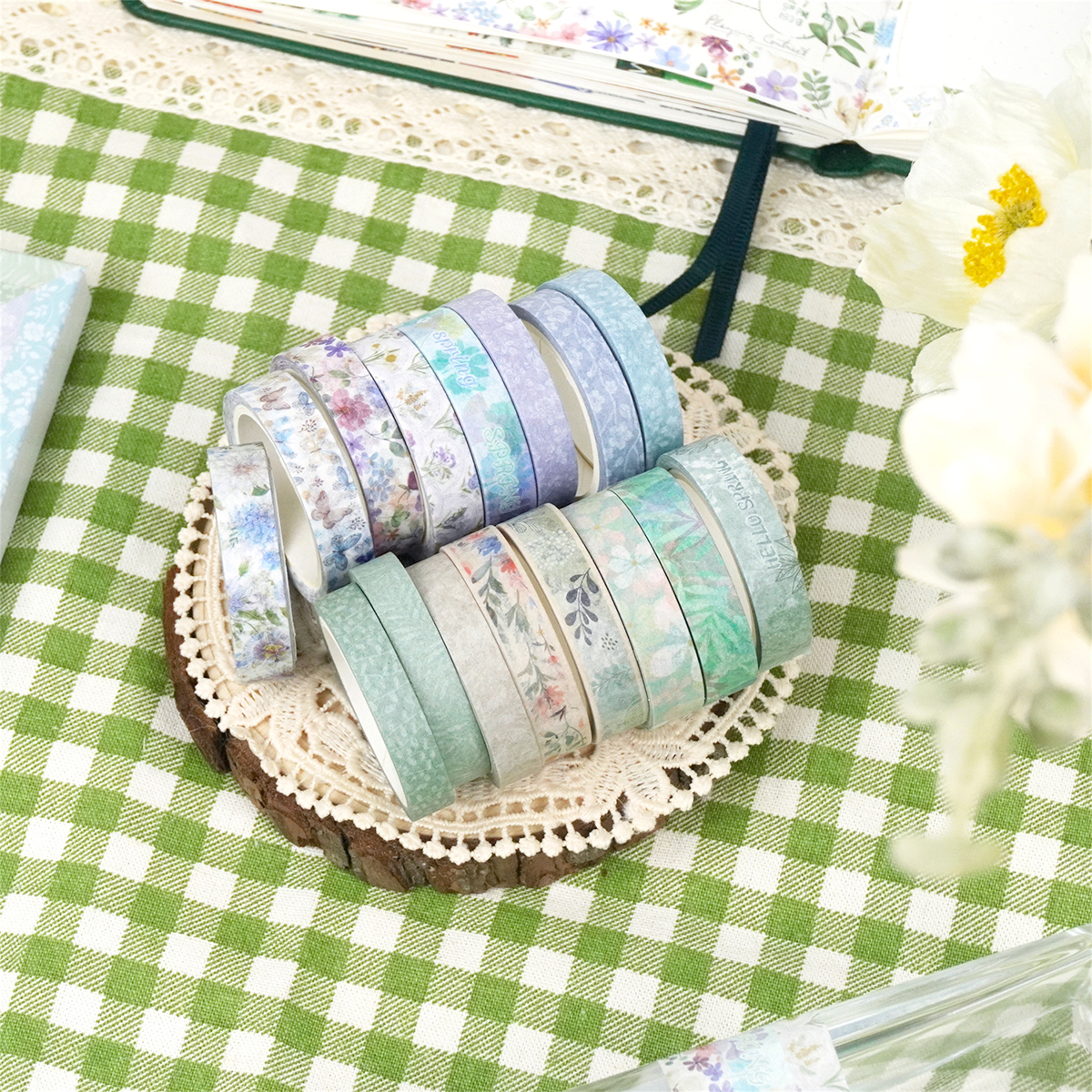 This tape set is best used for journaling, scrapbooking, planner decorating, school stationery, gift wrapping, card making, and DIY crafts. It is also great for adding seasonal charm during spring or anytime you want a fresh, natural look. What makes this product special is the variety of coordinated designs in one box, allowing you to mix, match, and layer with ease.