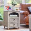 The magic of this piece is its seamless blend of classic design and smart technology. While its Roman column legs and natural wood grain bring timeless farmhouse elegance, the integrated charging station is pure modern convenience. With two AC outlets and two USB ports, you can power up all your essentials from one neat, central location. The thoughtful cable management hole keeps cords organized and out of sight, making this nightstand special for its ability to simplify your life without sacrificing an ounce of style.