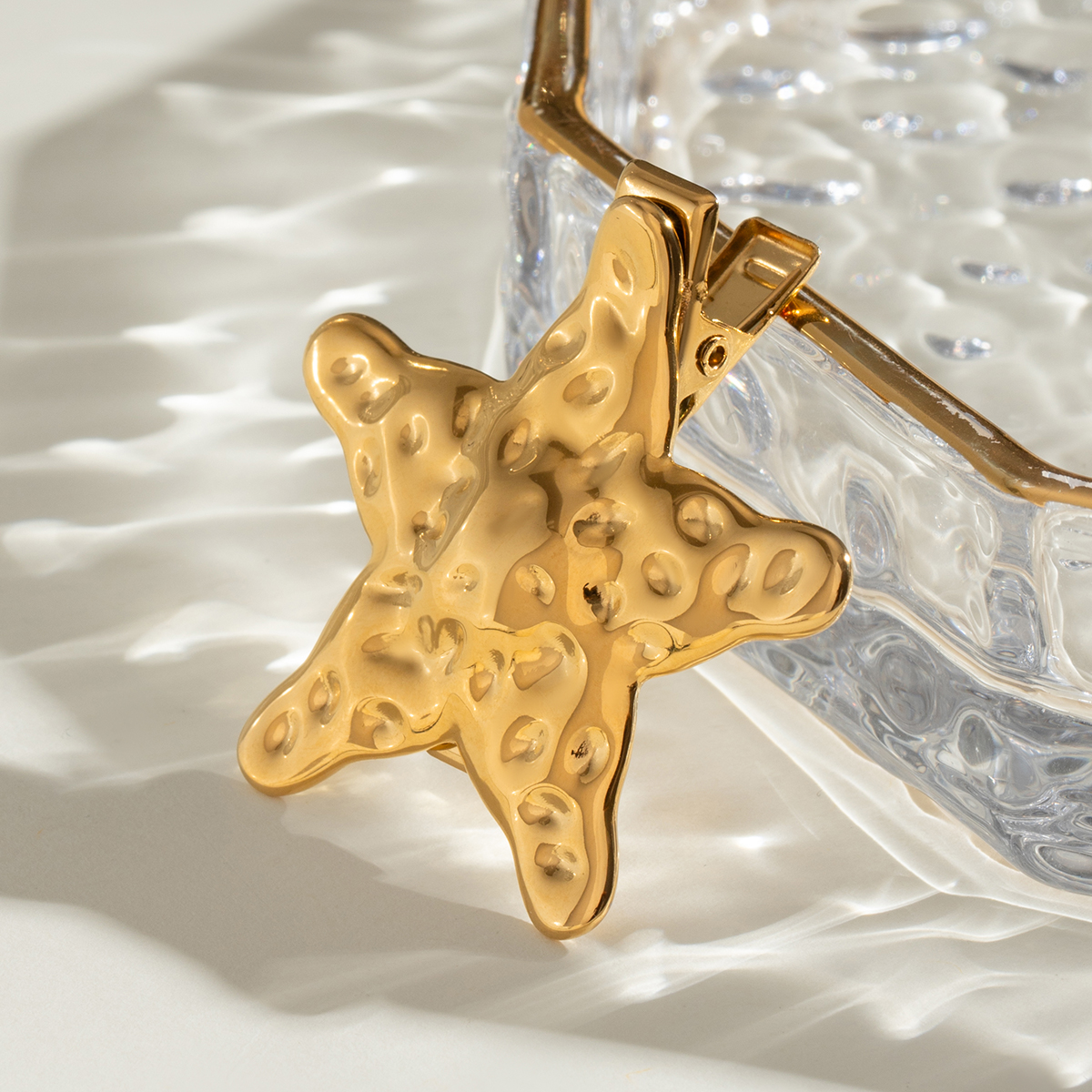 18K Gold Plated Sea Star Hammer Pattern Hairpin – Waterproof Hair Accessories