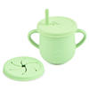 Unlike regular cups, this 2-in-1 design works as both a sippy cup and a snack container. The soft silicone material is gentle, durable, and easy to clean. Its leakproof construction helps prevent spills, making it perfect for busy parents and active kids. The simple, solid-color design also looks great in any kitchen or diaper bag.