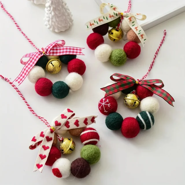 This decoration is made from soft wool material and does not require any electricity or batteries. It is lightweight, safe for indoor use, and ideal for creating a natural and cozy holiday style. The mini bell adds a gentle festive accent, while the wool balls bring texture, warmth, and color to your décor.