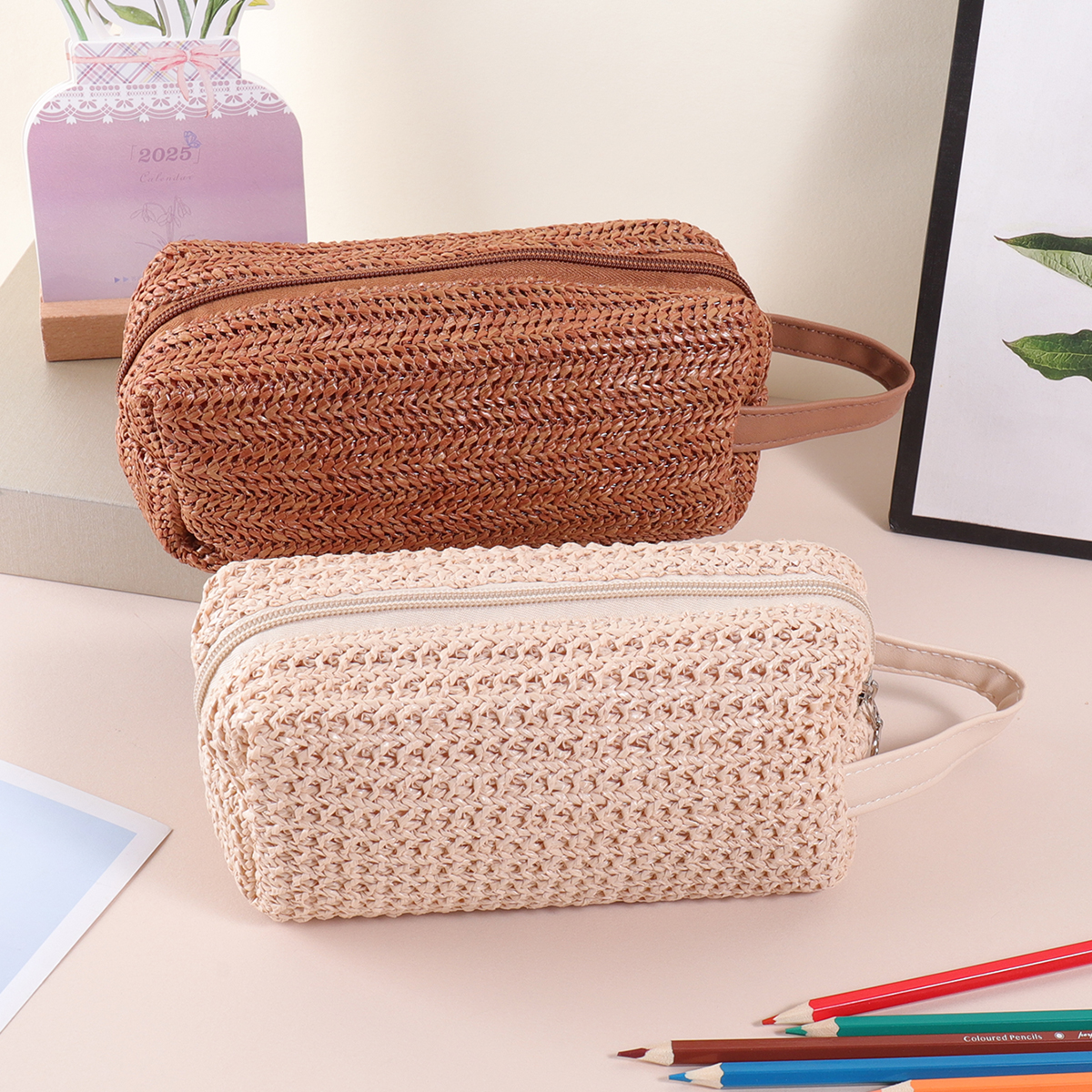 Bring charm and order to your everyday routine with this creative imitation woven pencil case. Designed to look like classic handwoven storage, it blends vintage warmth with modern practicality. The textured woven-style surface adds character to any desk, shelf, or workspace, while the clean shape keeps everything neat and easy to reach. Whether you are studying, working, or organizing your creative tools, this pencil bag turns simple storage into a stylish statement.