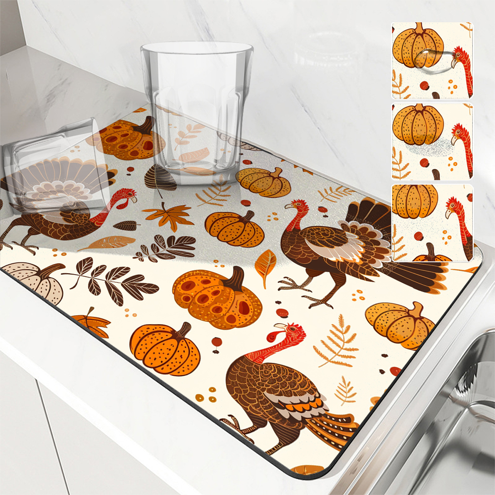 Celebrate the cozy charm of fall with this Thanksgiving Turkey Pumpkin Absorbent Drying Mat. Designed with festive patterns of turkeys and pumpkins, this mat doesn’t just add a seasonal touch — it makes your kitchen cleaner, neater, and more inviting. Whether you’re prepping for a big family dinner or simply want to bring harvest vibes to your space, this mat is a delightful mix of function and festivity.