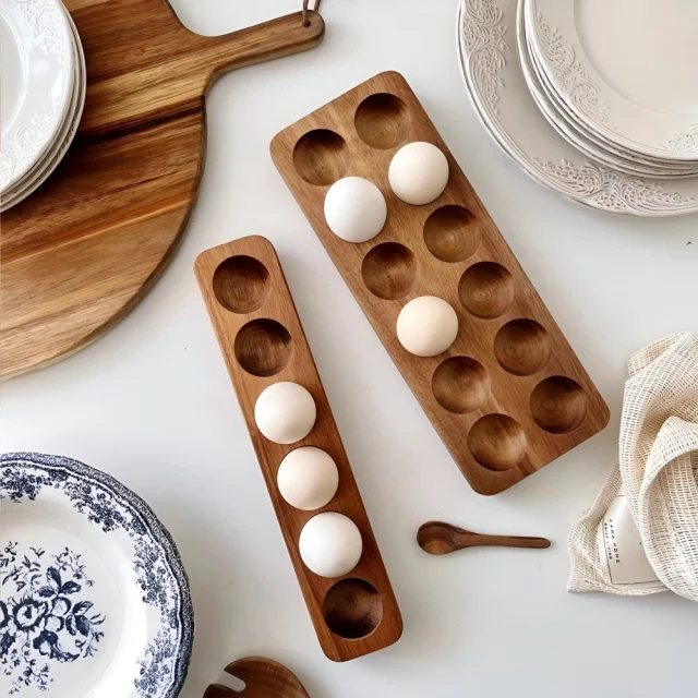 Unlike plastic or metal alternatives, this Acacia Wood Egg Tray combines natural craftsmanship with eco-conscious design. Its solid wood construction and refined Scandinavian aesthetic make it more than just a storage rack—it’s a statement piece that adds warmth and functionality to your kitchen.