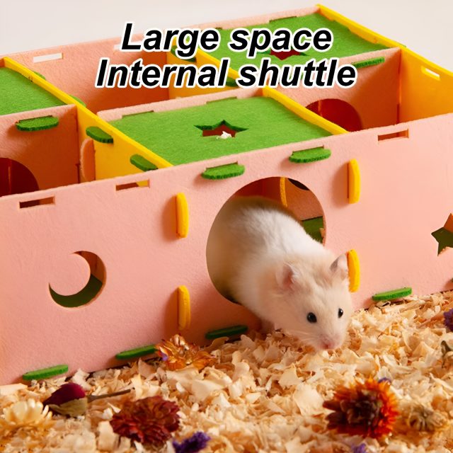 Give your furry friend a perfect retreat with this Removable Felt Maze Hide Nest Toy Hamster Tunnel House. Designed with both comfort and fun in mind, this cozy little house is perfect for small pets like hamsters, sugar gliders, and even small rabbits. Its unique maze design will spark your pet’s curiosity, providing hours of entertainment and exercise. Made from high-quality fleece and polyester materials, it’s soft, comfortable, and safe for your pet to explore. This is more than just a hiding spot – it’s a great way to enrich your pet’s environment while ensuring they feel secure and at ease.