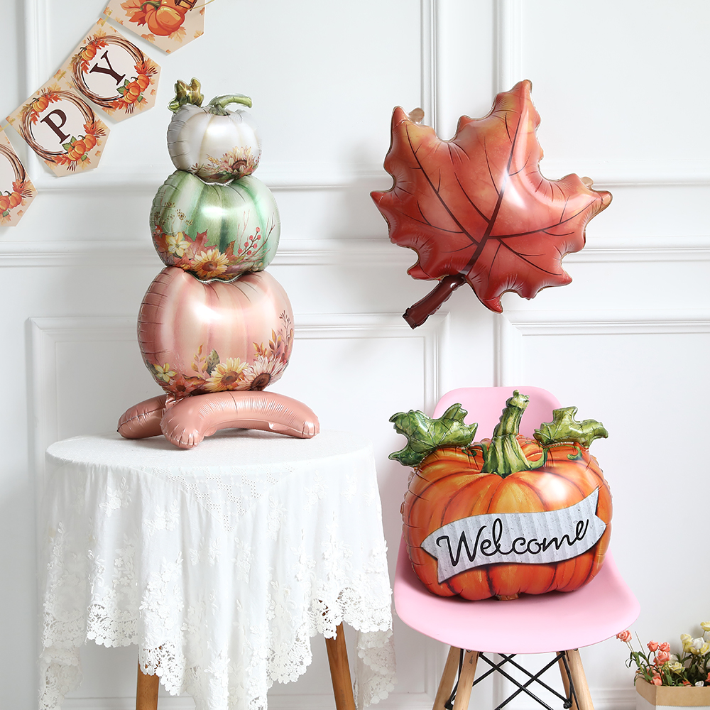 Bring the spirit of fall into your celebrations with our delightful Thanksgiving Standing Pumpkin Balloon! This vibrant and charming foil balloon features a seasonal pumpkin design adorned with colorful maple leaves, making it the perfect decoration for Thanksgiving gatherings, autumn-themed birthday parties, or baby showers. With its playful design, this balloon is sure to create a cheerful atmosphere wherever it is displayed.