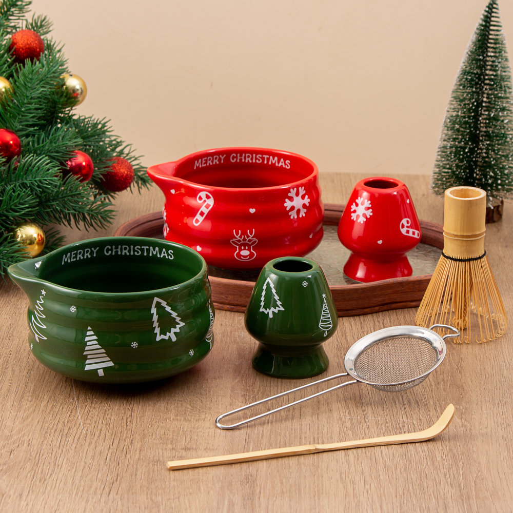 This set is made specifically for matcha preparation, giving you all the essential tools you need for a rich, frothy, and flavorful ceremonial-style drink. The premium ceramic material helps maintain ideal temperatures and ensures long-lasting quality. Its charming Christmas-themed design brings a cozy, cheerful vibe, making it perfect for holiday mornings, winter gatherings, or thoughtful gifting.
