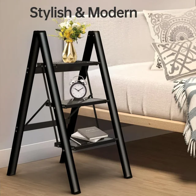 Make everyday tasks safer and easier with this lightweight 3-step folding aluminum ladder. Designed for daily use at home or in the office, it gives you the extra height you need without the bulk of a traditional ladder. Whether you’re reaching the top shelf, changing a light bulb, or decorating for a special occasion, this step ladder delivers stability, comfort, and peace of mind every time you climb.