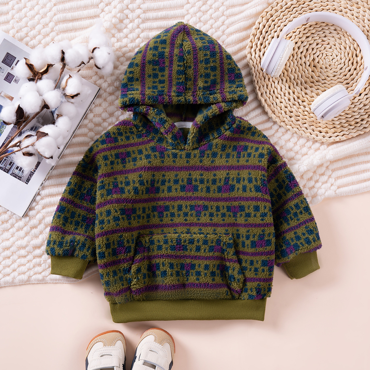 This fleece hoodie isn’t just another toddler sweatshirt—it’s a wardrobe staple that balances warmth, comfort, and modern style. Its plaid pattern adds a fashionable twist, while the practical design ensures durability for active kids. Best worn during chilly autumn afternoons and frosty winter days, it makes layering simple and stylish. Parents love its easy-care fabric, while kids love the soft, cozy feel.