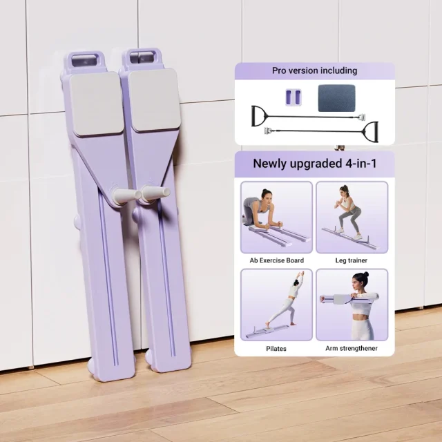 • Multi-Function Design: Combines a pilates reformer, leg clamping machine, and abdominal fitness wheel in one compact device.