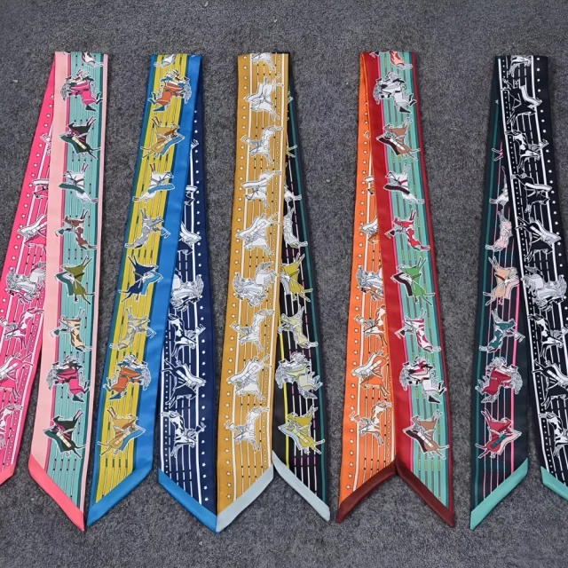 Crafted from smooth, soft silk, this scarf feels luxurious against the skin and drapes gracefully around your neck, wrist, or hair. Measuring approximately 47 inches long, it’s just the right length to tie around your bag handle, wear as a necktie, or style as a chic headband. This is the piece your wardrobe has been waiting for — a statement of taste, style, and elegance.