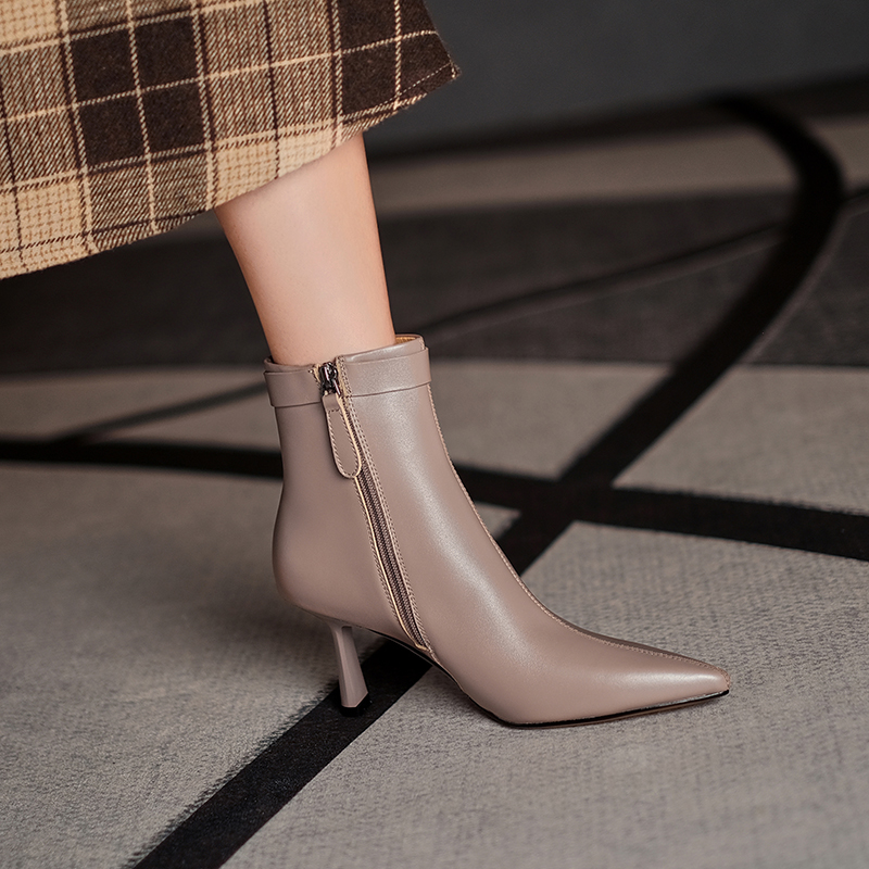 Step into the new season with boots that speak sophistication. Add these stiletto leather ankle boots to your collection today and redefine your winter fashion with effortless allure and timeless charm.