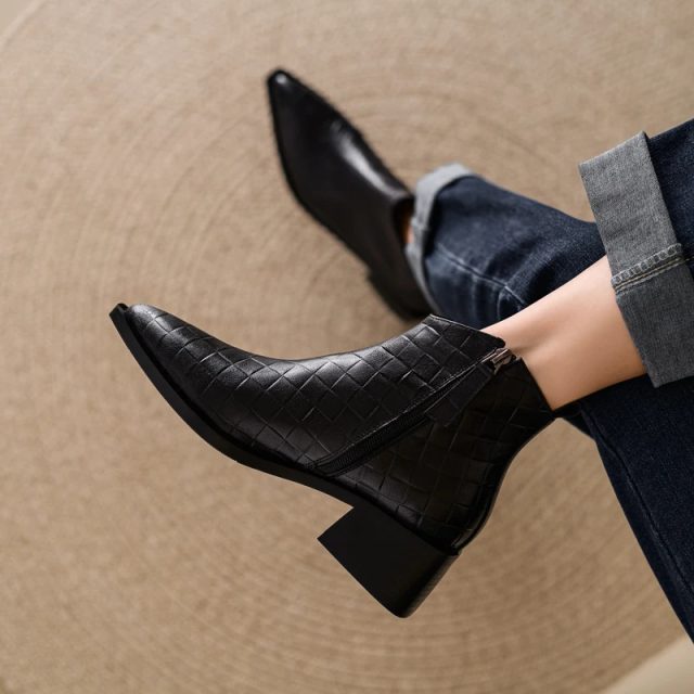 Turn heads wherever you go with these stunning Pointed Toe Chunky Heel Leather Ankle Boots. Designed for modern women who love elegance and comfort, these boots are your perfect companion for the chilly season. Crafted from genuine cow leather, they combine timeless sophistication with all-day wearability. Whether you’re dressing up for an evening out or adding flair to your casual winter outfit, these boots elevate every look with ease and charm.