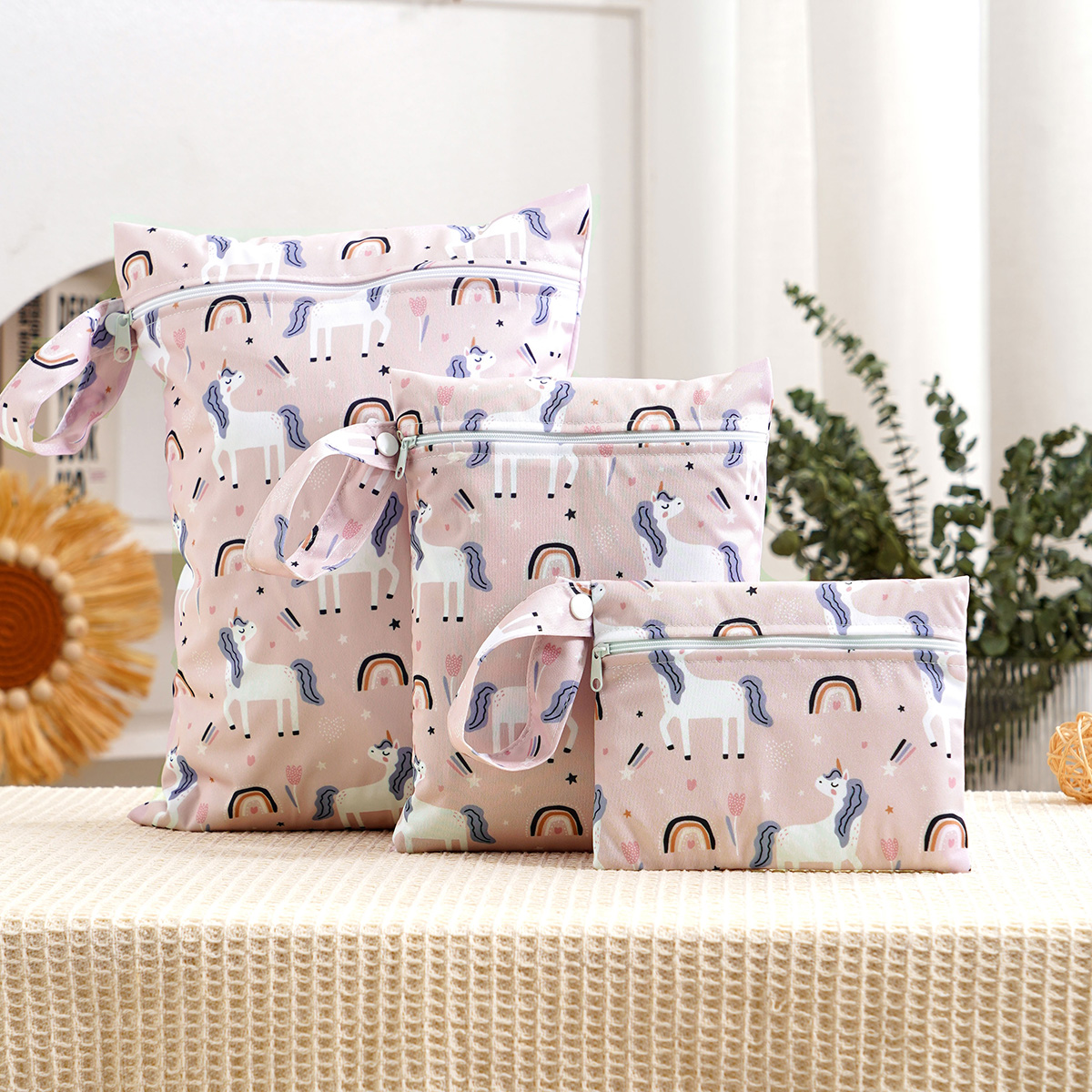3pcs Baby Diaper Bag Set Waterproof Wet Dry Pouch & Travel Storage Tote
