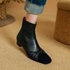 These modern Chelsea boots feature a chic square toe and a comfortable chunky heel for a confident stride. With a height that sits just above the ankle, they strike the perfect balance between style and practicality. The inside is lined with soft genuine leather and a sheepskin insole that keeps your feet warm and cushioned throughout the day. The durable TPR outsole ensures excellent grip, while the easy side zip closure makes them simple to slip on and off.