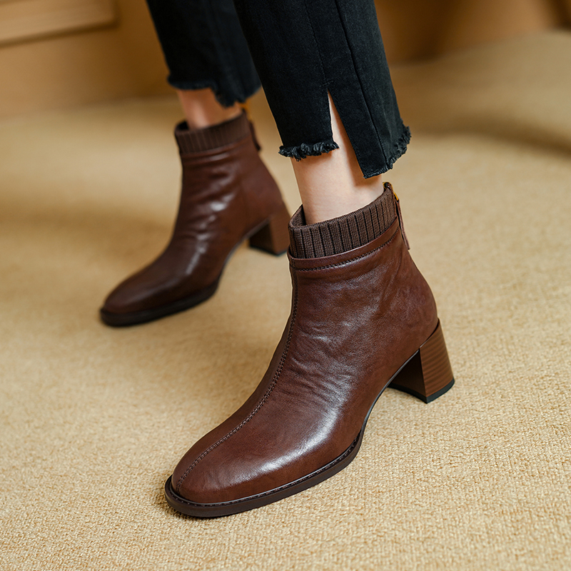 Step into effortless sophistication with these genuine leather ankle boots designed for women who value both style and comfort. Perfect for the modern woman, these boots feature a sleek round toe and square high heel that combine classic design with contemporary flair. Whether you’re heading to the office, a casual outing, or a night out, these boots instantly enhance your look with understated elegance.