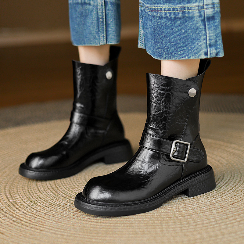 These boots are more than just a fashion statement – they’re designed for real-world comfort. The sturdy rubber outsole gives you reliable traction, while the square heel offers stability, making them ideal for walking and everyday wear. The buckle strap adds an eye-catching detail, elevating your outfit with a chic touch. Whether you’re heading to work, running errands, or enjoying a day out, these boots are the perfect companion for your winter wardrobe.