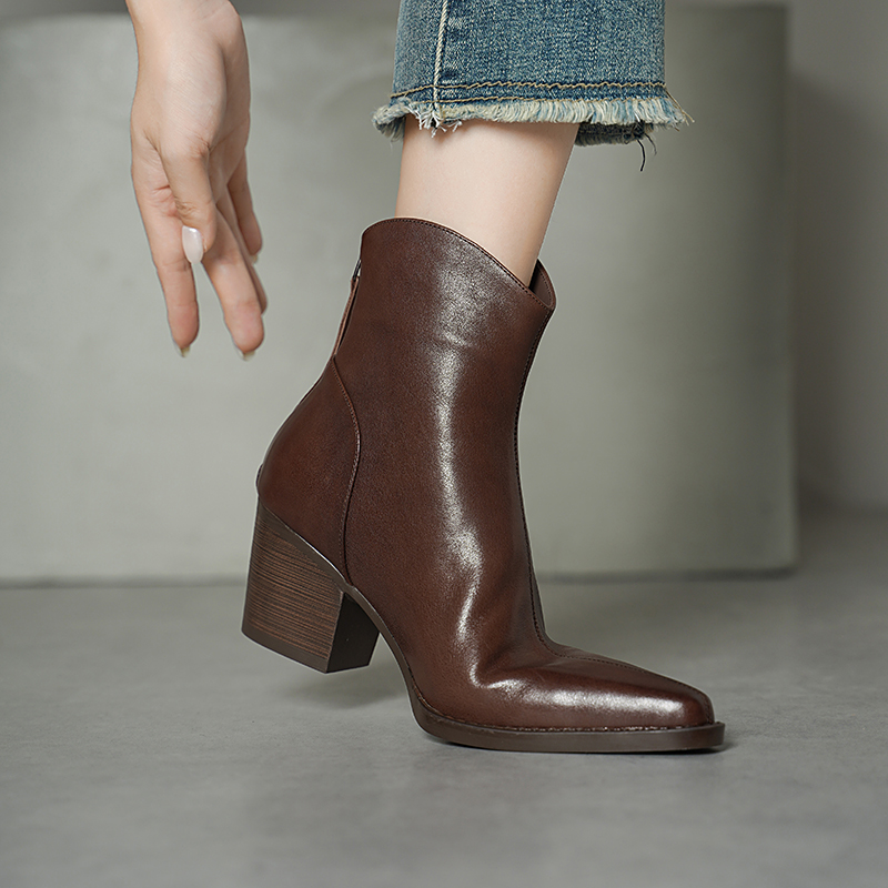 These ankle boots offer a sleek, stylish design that pairs beautifully with any outfit. Crafted with genuine leather on the upper and lining, they deliver both durability and a luxurious feel. The pointed toe adds a touch of sophistication, while the sturdy square heel offers just the right amount of height without compromising on comfort. With a zipper closure for easy on-and-off wear, these boots are as functional as they are fashionable.
