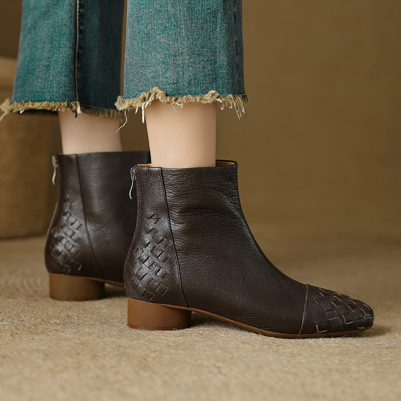 Whether you’re heading to the office, meeting friends, or exploring the city, these low heel leather ankle boots are your perfect companion. With their elegant round toe and refined weave detail, they strike the perfect balance between style and comfort. Step confidently into the new season — your wardrobe deserves this touch of effortless luxury.