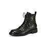 The boots feature a concise and sleek silhouette, enhanced with a subtle retro platform sole that adds height without sacrificing comfort. A cross-tied fashion element brings a unique, handcrafted touch to the design, making each step a statement.