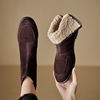 These short suede boots are perfect for winter’s casual moments — from cozy weekends to effortless daily wear. Their solid, minimalist design complements any outfit, whether jeans, leggings, or a warm wool skirt. The natural suede texture and subtle splicing detail add a touch of refinement, making them as stylish as they are practical. With the cushioned latex foam insole, every step feels supported and soft, even on long days out.