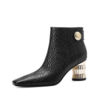 These ankle boots are designed to meet the needs of the modern woman who values both style and practicality. The square heel adds a contemporary touch, making them perfect for any occasion, whether you’re dressing up for a night out or adding a stylish flair to your everyday look. The genuine leather construction ensures long-lasting durability, while the short plush lining keeps your feet warm and cozy all day long. The high heel gives you just the right amount of lift, making these boots versatile enough to pair with jeans, skirts, or dresses. The zip closure provides an effortless way to get in and out of your boots, so you can be ready in no time.