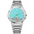 This watch features a round stainless steel case with a diameter between approximately 1.6 – 1.7 inches and a slim profile of about 0.46 inches thick. The stainless steel bracelet measures around 0.8 – 0.9 inches in width and 6.7 inches in length, creating a solid yet comfortable fit for most wrists.