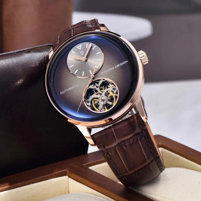 Elevate your everyday style with this tourbillon-inspired automatic men’s watch, designed for men who value precision, elegance, and presence. This timepiece brings together classic craftsmanship and modern minimalism, creating a bold yet refined look you can wear anywhere.