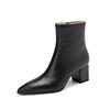 Step into the cold season with confidence and style. These fashionable wool-warm leather ankle boots are designed for women who love sleek looks without sacrificing comfort. Crafted from genuine cow leather and lined with plush wool, they deliver impressive warmth and a refined silhouette that enhances any winter outfit. With a chic pointed toe and a stable 2.3 in high heel, these boots blend elegance and practicality for everyday wear.