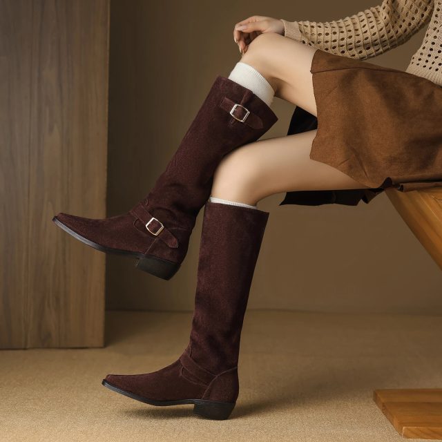 Crafted from high-quality genuine leather with a soft suede finish, these boots deliver durability and sophistication in every step. The plush interior lining provides reliable warmth during crisp autumn days and chilly winter nights. A supportive square heel—approximately 1.6 inches—adds just the right amount of lift without sacrificing comfort, making them ideal for all-day wear.