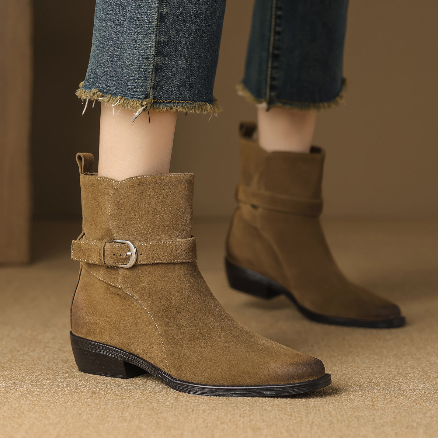 Bring a touch of Western charm and modern sophistication to your wardrobe with these stunning real cow suede ankle boots. Designed for women who love timeless style with a modern twist, these Western ankle boots blend rugged elegance with unmatched comfort. Crafted from genuine cow suede, they offer a luxurious feel and long-lasting durability that keeps you looking effortlessly chic all winter long.