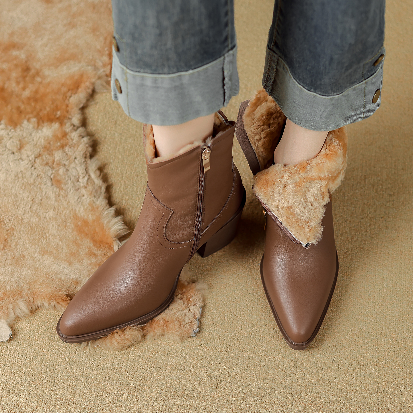 Step into winter with warmth, elegance, and confidence. These genuine leather ankle snow boots are crafted for women who want to stay cozy without compromising on style. Designed with a chic square heel and a sleek pointed toe, they bring a refined British-inspired look to your cold-weather wardrobe. Whether you’re heading to work, strolling through the city, or enjoying a snowy weekend outing, these boots deliver the perfect balance of fashion and function.
