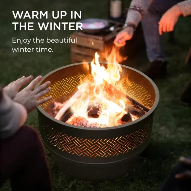 Enjoy three uses in one versatile unit! Use it as a bonfire pit for warmth and ambiance, a barbecue grill for outdoor cooking, or a patio table when covered with the wood grain lid. Its 26-inch round surface comfortably seats 4–6 people, making it perfect for family gatherings, backyard parties, or quiet evenings by the fire.