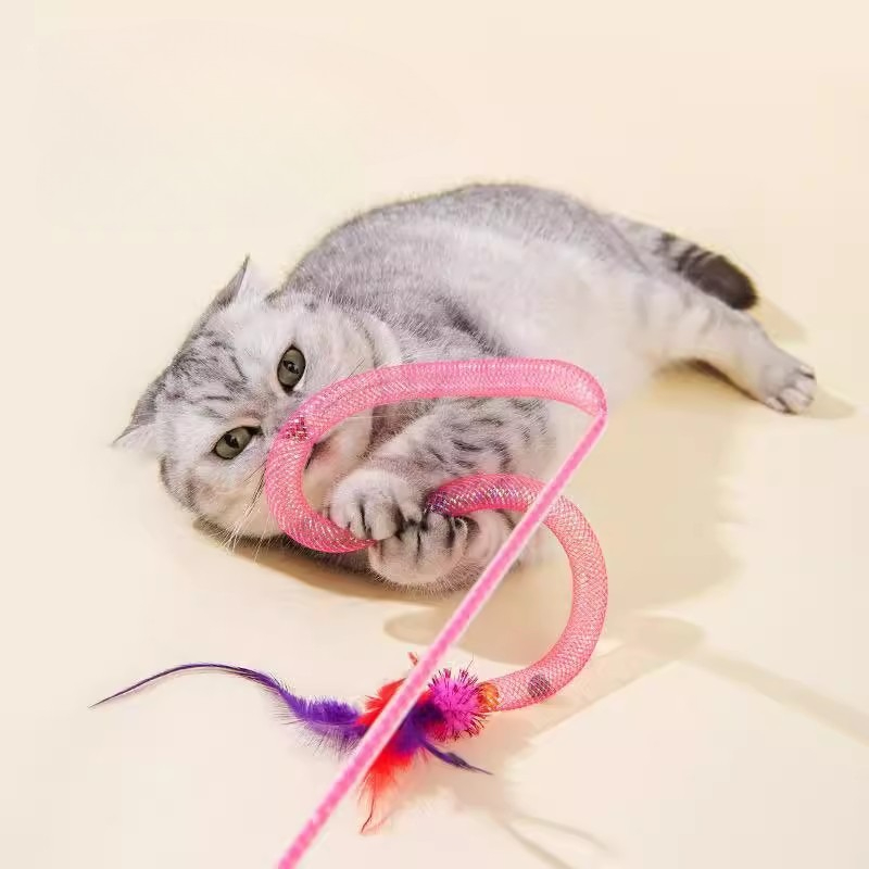 Keep your cat active, curious, and happily entertained with this interactive feather wand cat toy set. Designed to awaken natural hunting instincts, this playful teaser combines soft feathers with an elastic mesh tube that moves unpredictably with every flick of the wrist. The result? A fun, engaging experience your cat won’t be able to resist.