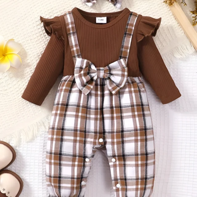 Dress your baby girl in charm and comfort with this 2-piece plaid romper and headband set. Perfect for spring and autumn, this outfit brings together soft fabric, timeless design, and a dash of playful elegance. The classic plaid pattern and long sleeves create a cozy yet fashionable look, ideal for both indoor and outdoor moments. Whether it’s a casual day out, family gathering, or a sweet photoshoot, your little one will shine with irresistible cuteness.