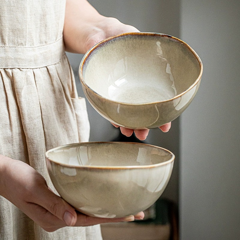 Enjoy a touch of elegance and simplicity with this set of two 5.5-inch ceramic bowls. Perfect for breakfast, salads, or snacks, these versatile bowls bring both functionality and style to your kitchen. Each bowl is uniquely crafted with an irregular kiln-fired design that makes them stand out on your dining table, offering an artistic yet practical addition to your dinnerware collection.