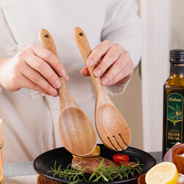 Whether you’re hosting a dinner party, preparing a casual meal at home, or looking to add a touch of elegance to your everyday dining experience, this wooden spoon and fork set is the perfect utensil solution. Their unique design makes them perfect for a variety of dishes, and their eco-friendly materials ensure that your choice of tableware reflects your commitment to sustainability.