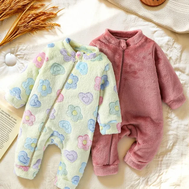 Wrap your baby girl in ultimate comfort with our 2-piece thick fleece romper set. Designed for newborns to toddlers (1–24 months), these ultra-soft rompers keep your little one warm, snug, and irresistibly cute through chilly days and cozy nights. Made with 100% polyester fleece, this jumpsuit is gentle on delicate skin and provides exceptional warmth without being bulky. Whether it’s nap time, playtime, or a day out, your baby will feel safe and comfy all day long.