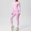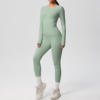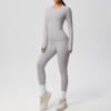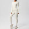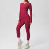 This yoga outfit includes a long-sleeved crop top and slim-fit leggings that shape, support, and flatter your figure. Made from a premium blend of nylon and spandex, the fabric stretches with your body without losing shape. The high-waist design smooths your silhouette and provides gentle compression for a secure yet comfortable fit. The snug cuffs and seamless design ensure everything stays perfectly in place through every move, squat, or stretch.