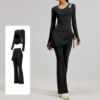 Feel empowered and elegant in this 2PCS Women’s Yoga Set, designed to move with your body while keeping you cool and confident. Featuring a sleek long-sleeve yoga top with fixed chest pads and matching flared pants, this slim-fit gym suit offers the perfect blend of support, comfort, and stretch for every workout or casual day out. Made from a premium knit blend of 82.5% polyester and 17.5% spandex, this outfit delivers a smooth, second-skin feel that enhances your natural shape while allowing full freedom of movement.
