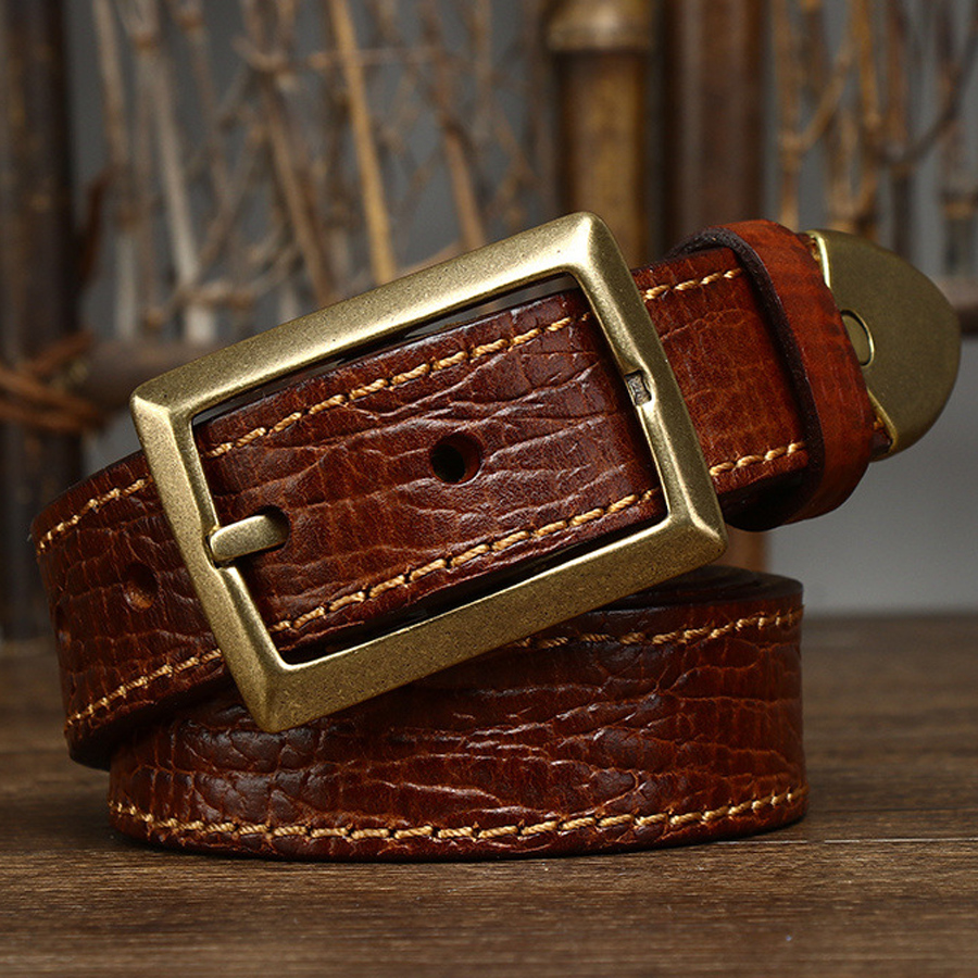 Upgrade your everyday look with a belt that feels as good as it looks. This luxury retro men’s belt is crafted from thick, genuine cowskin leather and finished with a solid brass buckle for a bold, masculine touch. Designed to stand out without being loud, it adds confidence to jeans, chinos, and casual trousers. From the first wear, you’ll notice the rich texture, firm structure, and premium feel that only real leather can offer.