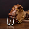 Discover a belt that does more than hold your outfit together — it completes it. This hand-woven, crocodile-embossed men’s leather belt blends classic craftsmanship with modern style, making it the perfect accessory for both casual looks and polished outfits. Designed at a comfortable 1.3 inches wide, it offers a balanced presence that stands out without overpowering your look.
